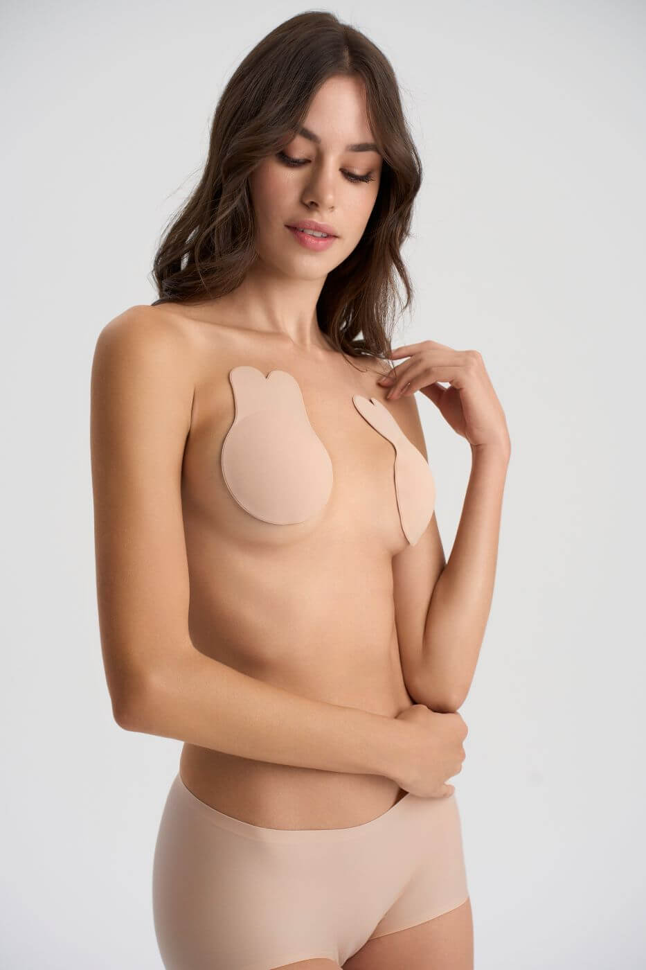 I Stick-On Rabbit Lifts di Nude Intimates offrono una soluzione elegante e pratica per valorizzare il décolleté sotto abiti senza schiena o profondamente scollati. Il design sagomato con finitura beige e superficie liscia consente di ottenere un effetto lift naturale in totale discrezione.