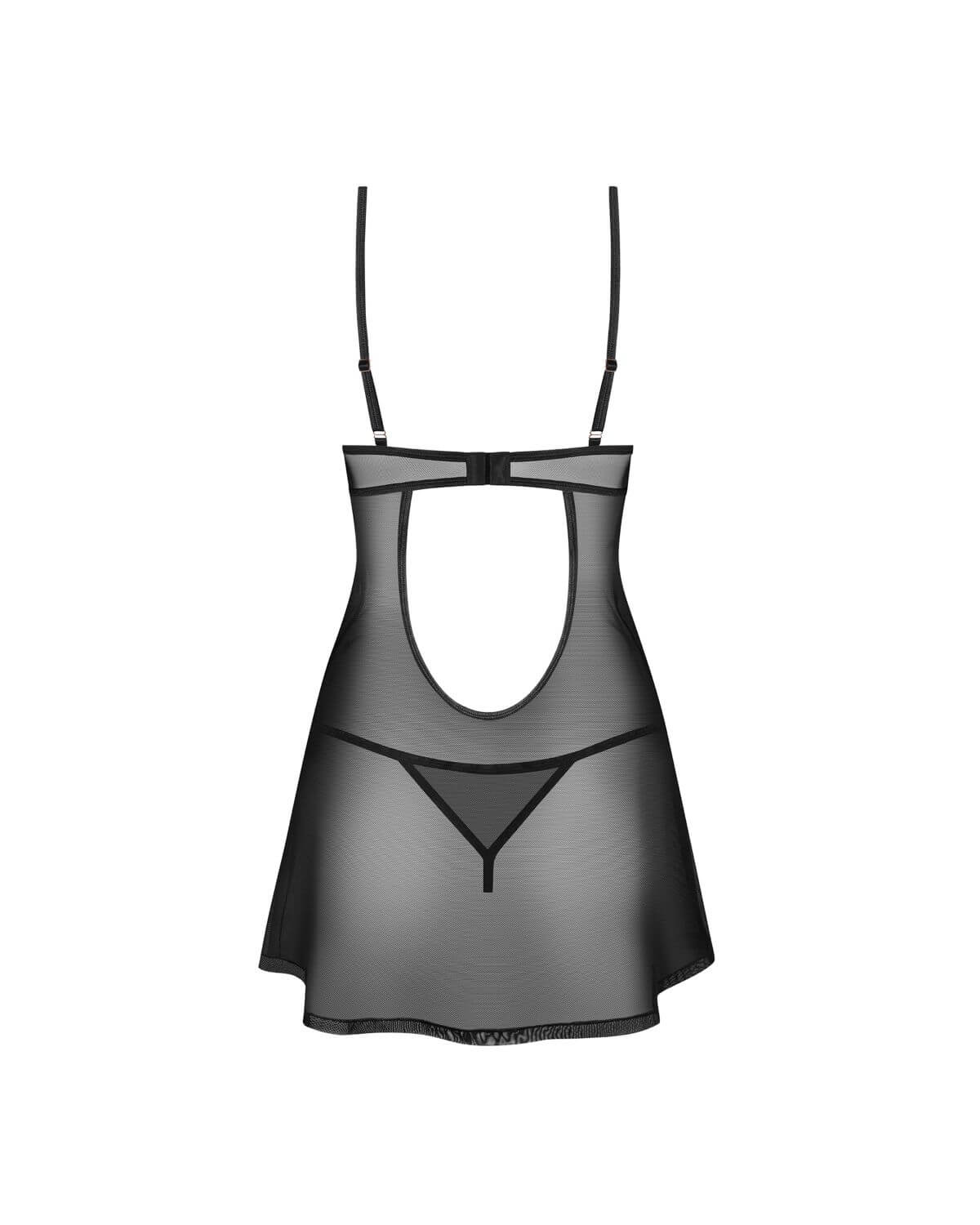 La chemise Euridia di Obsessive è il perfetto equilibrio tra comfort e fascino. Il tessuto nero trasparente accarezza le forme con morbidezza, mentre i dettagli oro rosa e le coppe strutturate aggiungono un tocco di stile sofisticato.