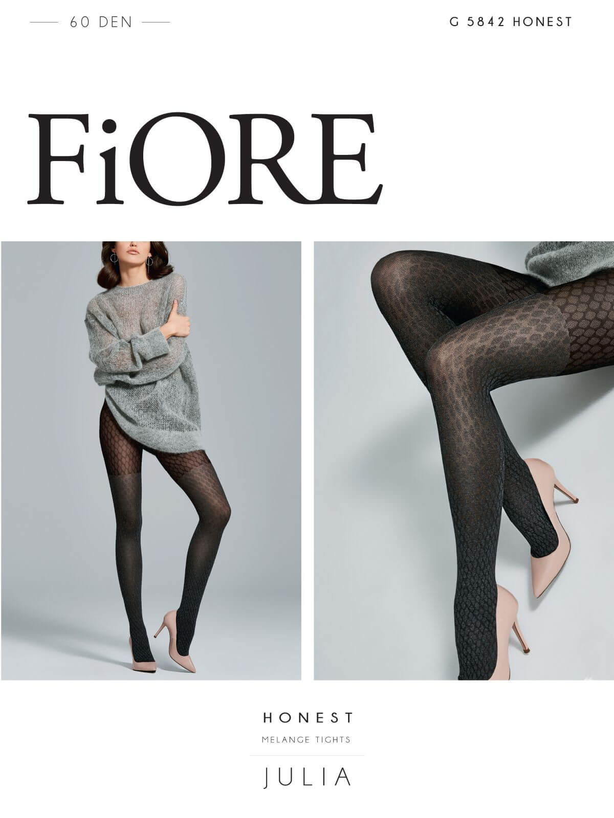 I collant HONEST di FiORE uniscono un raffinato motivo melange a una finitura opaca uniforme, perfetta per completare look quotidiani ed eleganti. La lavorazione patterned alterna zone più coprenti a un effetto t-band, donando struttura e armonia al design.