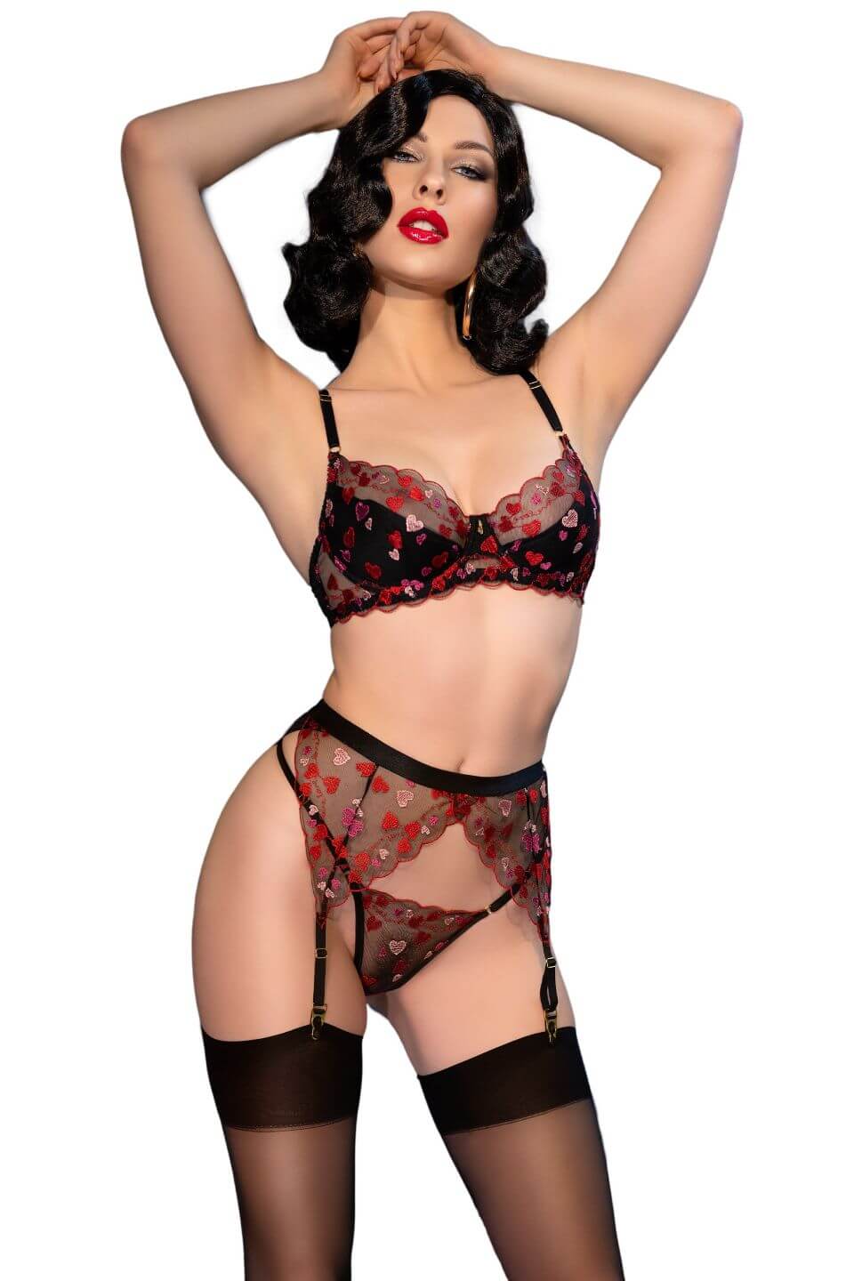 Sensuale set ricamato con cuori completo di accessori da Chilirose Lingerie