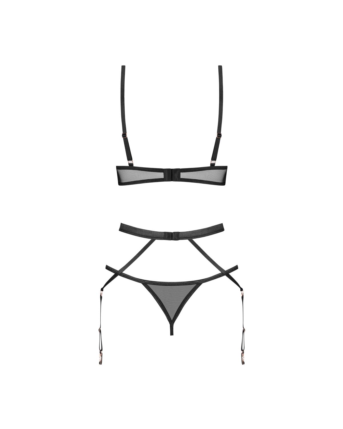 Completo nero Obsessive Euridia 3 pezzi con reggicalze e perizoma