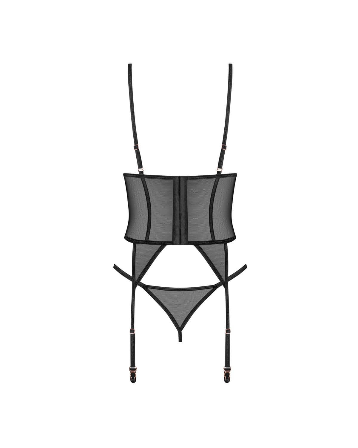 Corsetto nero Obsessive Euridia con tanga e dettagli oro rosa
