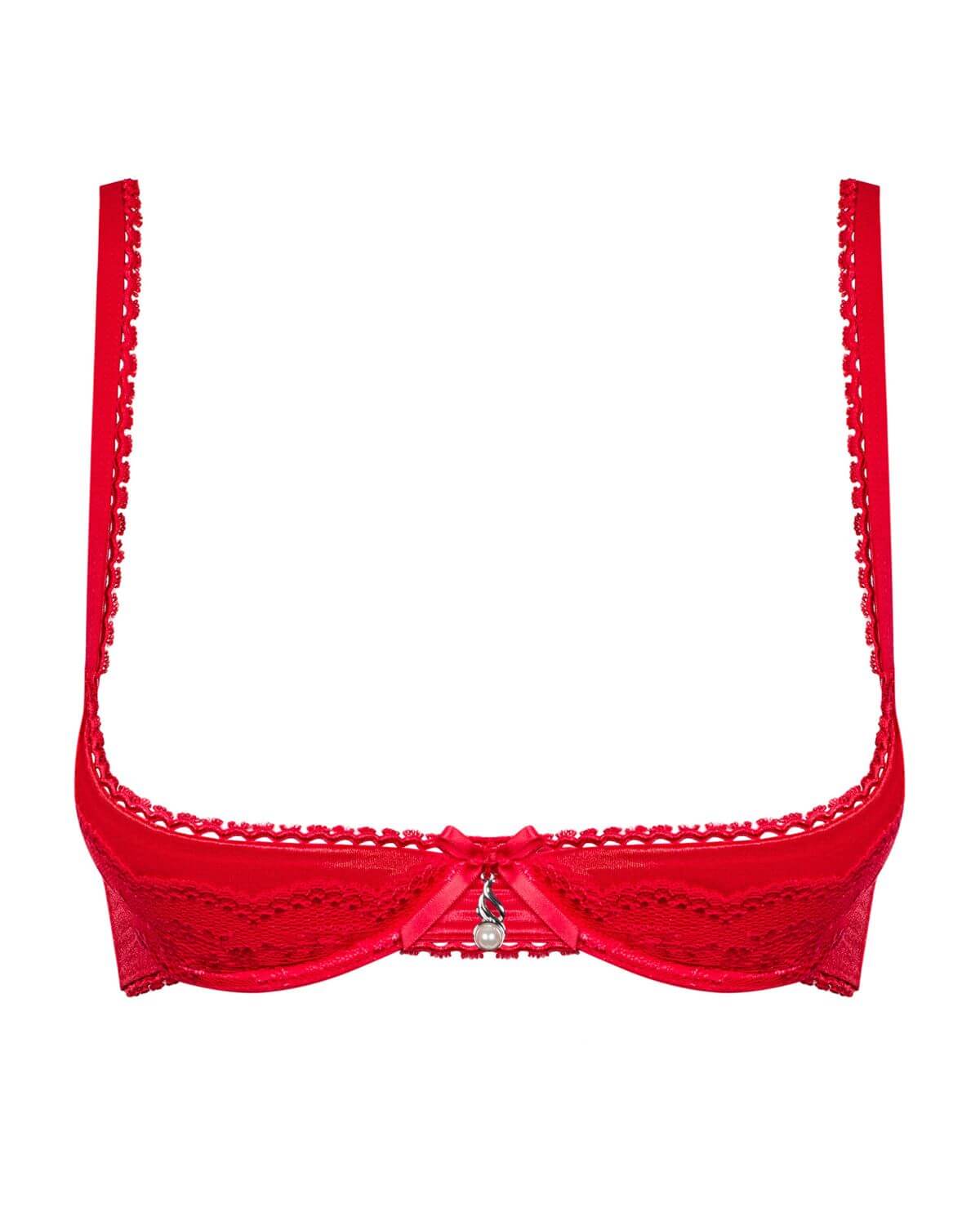 Una notte speciale merita una lingerie che accende i sensi. Il reggiseno aperto Obsessive Lovica, con il suo colore rosso intenso e la perla decorativa tra le coppe, è la scelta perfetta per sorprendere e sedurre. Le coppe imbottite con ferretto offrono un supporto ideale, mentre il pizzo delicato e il fiocco centrale aggiungono un tocco di femminilità sofisticata.