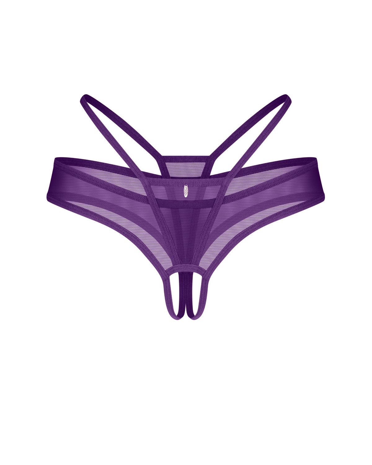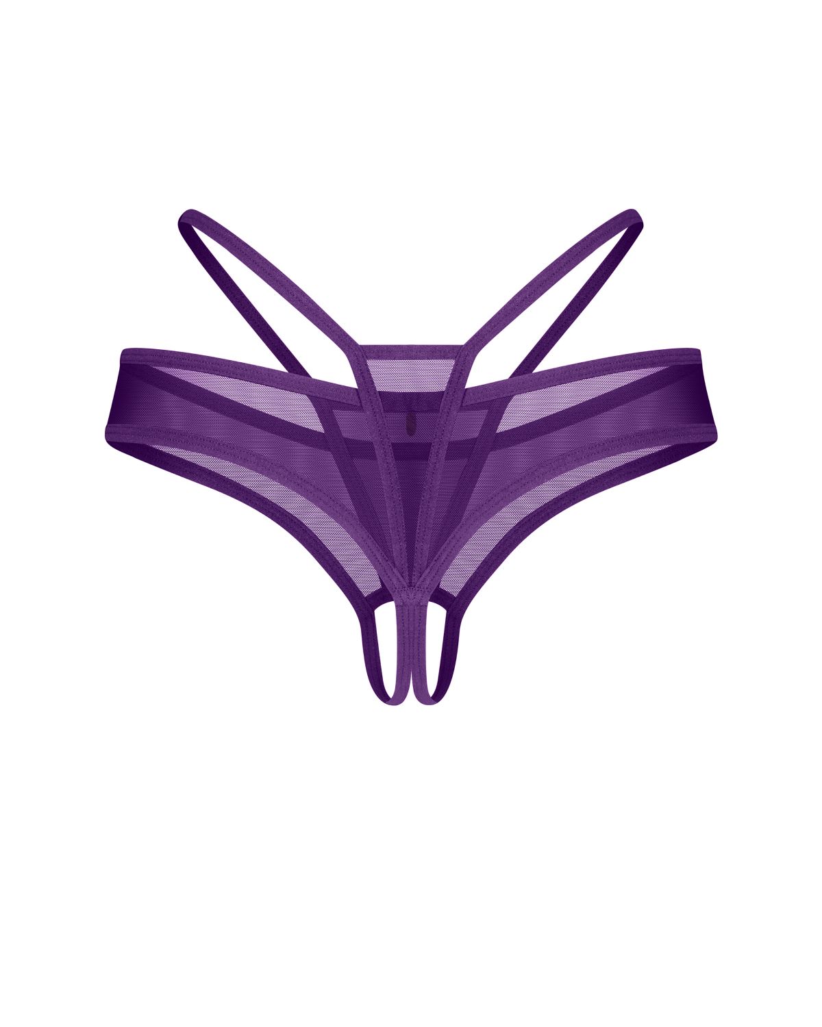 Perizoma viola aperto in tulle trasparente elasticizzato, firmato Obsessive