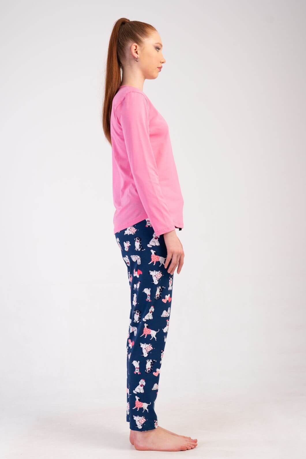 Pigiama rosa e blu con stampa cagnolini – Vienetta