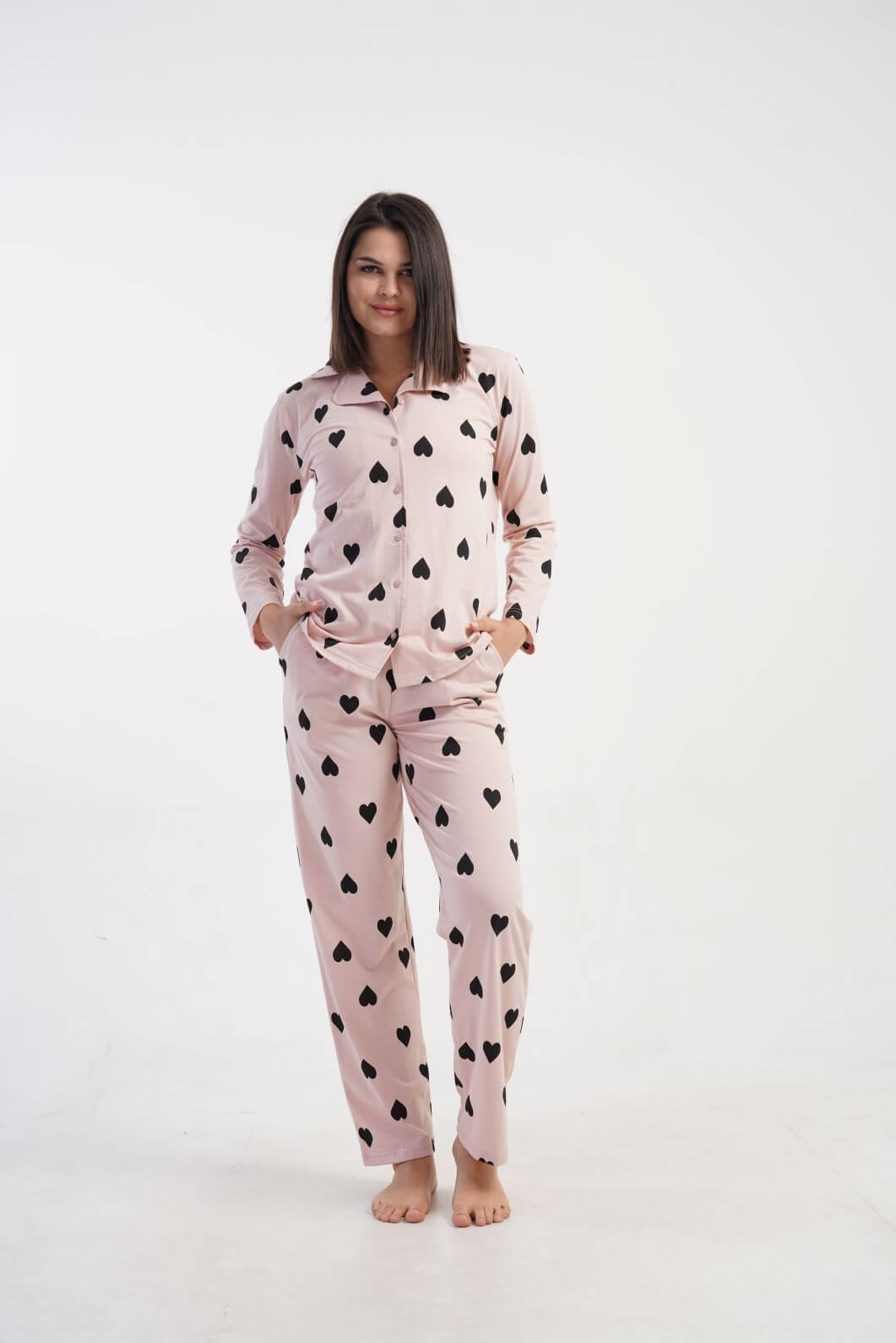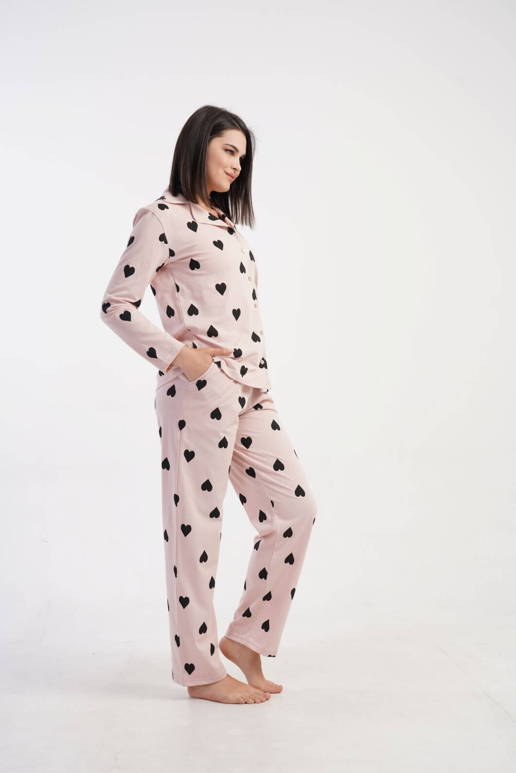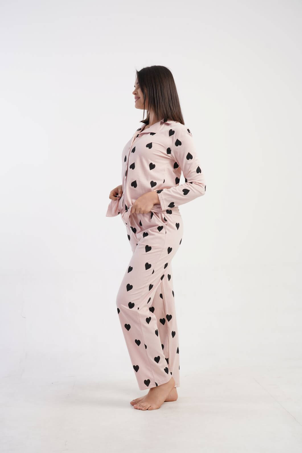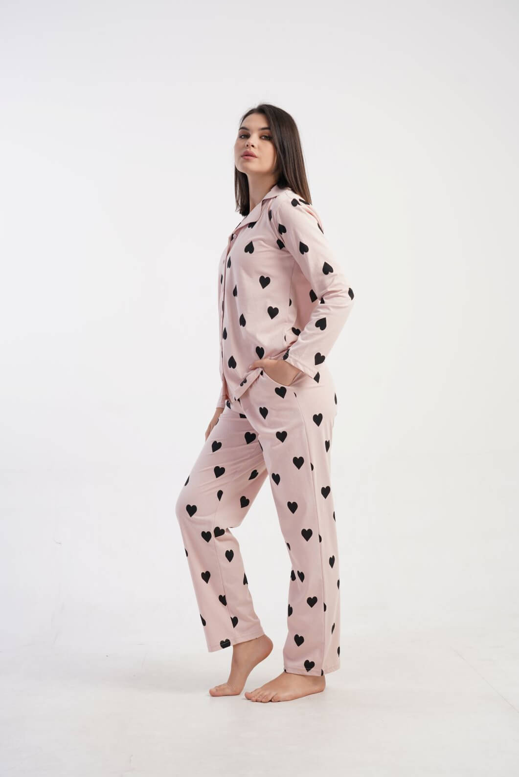 Pigiama da donna e ragazza in cotone con cuori neri – Eleganza e dolcezza firmate Vienetta